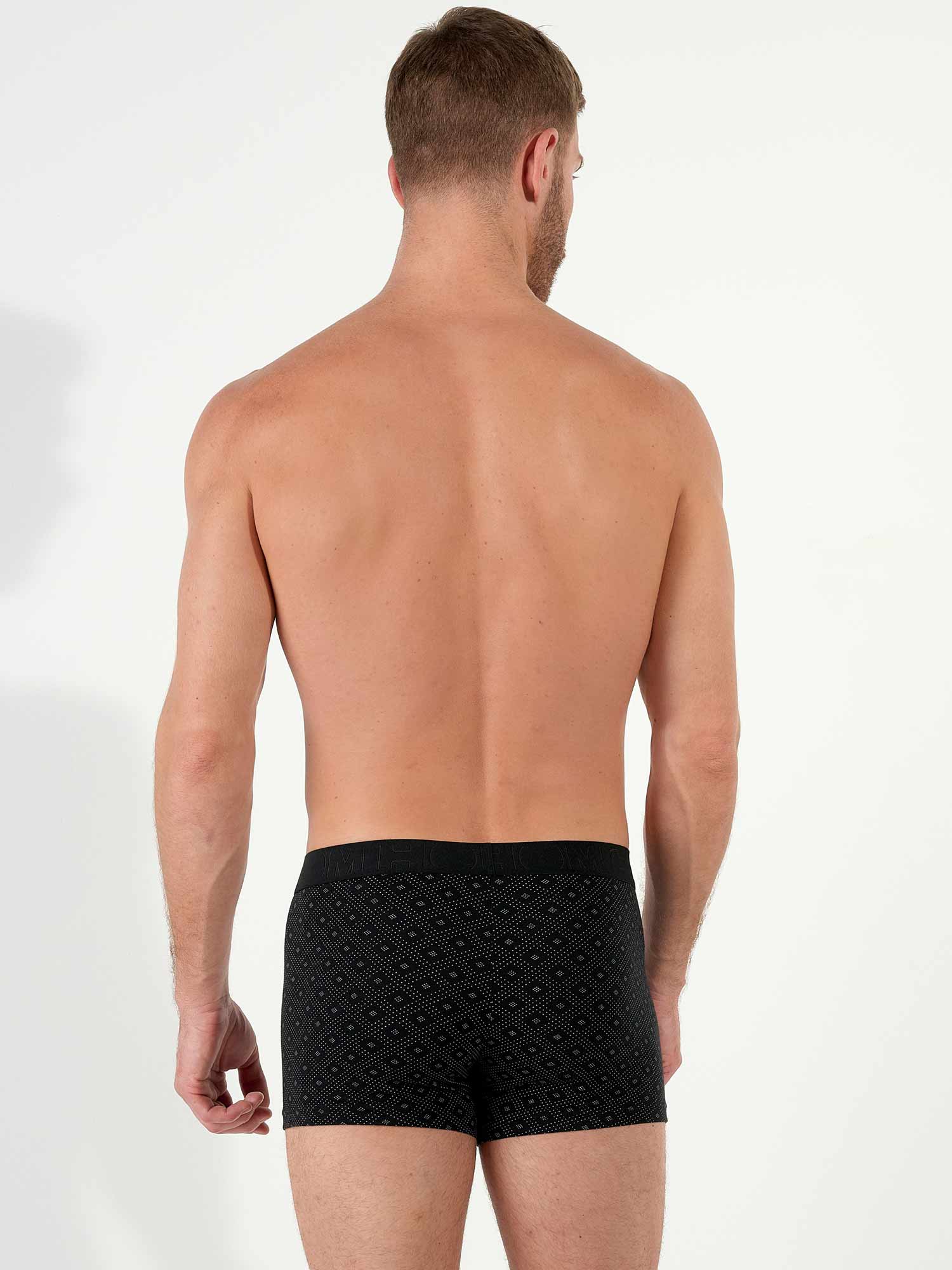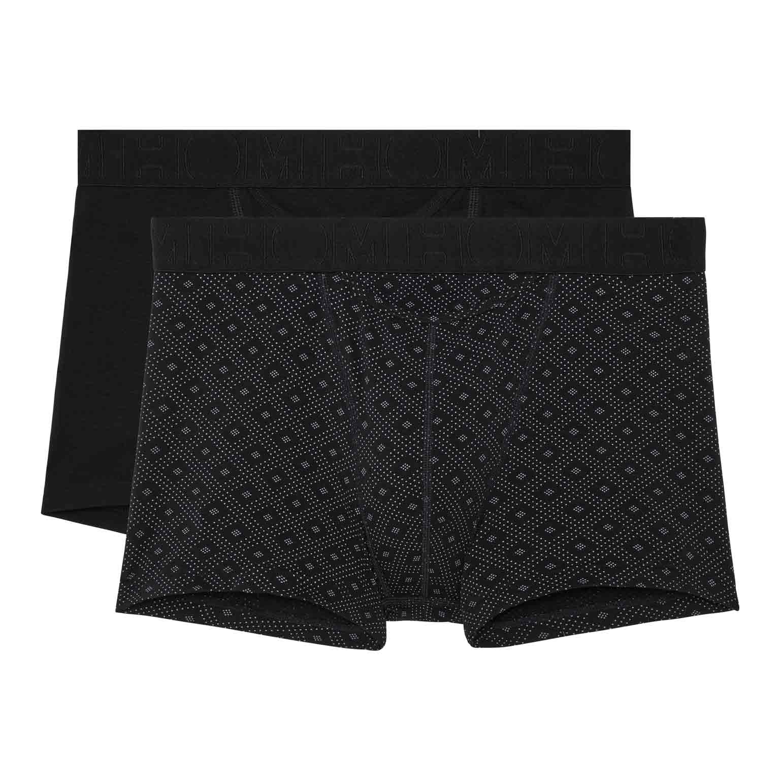 Enthalten sind eine schwarze Boxershort und eine mit einem eleganten Mikroprint im Krawattenstil. Die vordere Tasche ist gefüttert für zusätzlichen Halt, und der elastische Bund ist rundum mit dem dezenten HOM-Logo versehen. Eine ideale Wahl für Komfort und Stil.