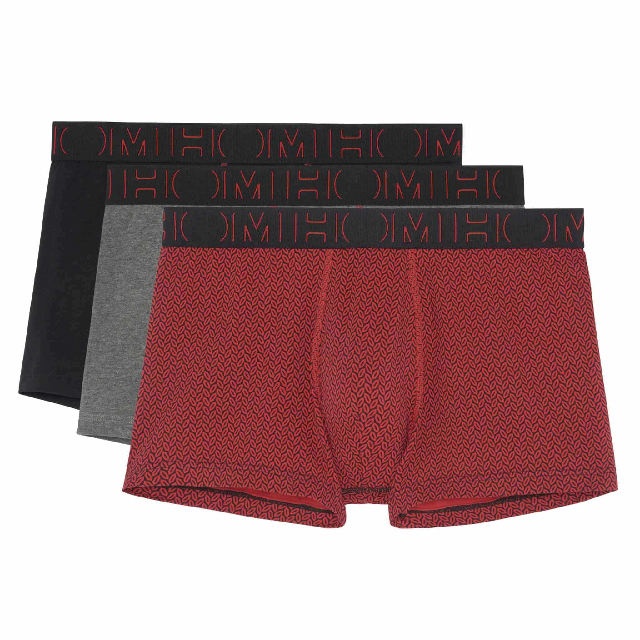 3 schöne Boxershorts im preiswerten 3er-Pack, hergestellt aus 93/7 Stretch-Baumwolle für eine tolle Passform. Die Boxershorts gehören zur BOXERLINES-Serie und sind aus gekämmter Baumwolle gefertigt. Dieses Multipack enthält 3 Boxershorts in den Farben Schwarz, Grau und Rot. 2 davon sind einfarbig mit roten Kontrastlinien und 1 Boxershorts mit einem Aufdruck. Diese alltagstauglichen Herren-Boxershorts sind mit einer Tasche auf der Vorderseite ausgestattet, die zusätzlichen Halt und Komfort bietet. Die Boxershorts sind aus leichterer Baumwolle gefertigt als die Einzelpackungen.