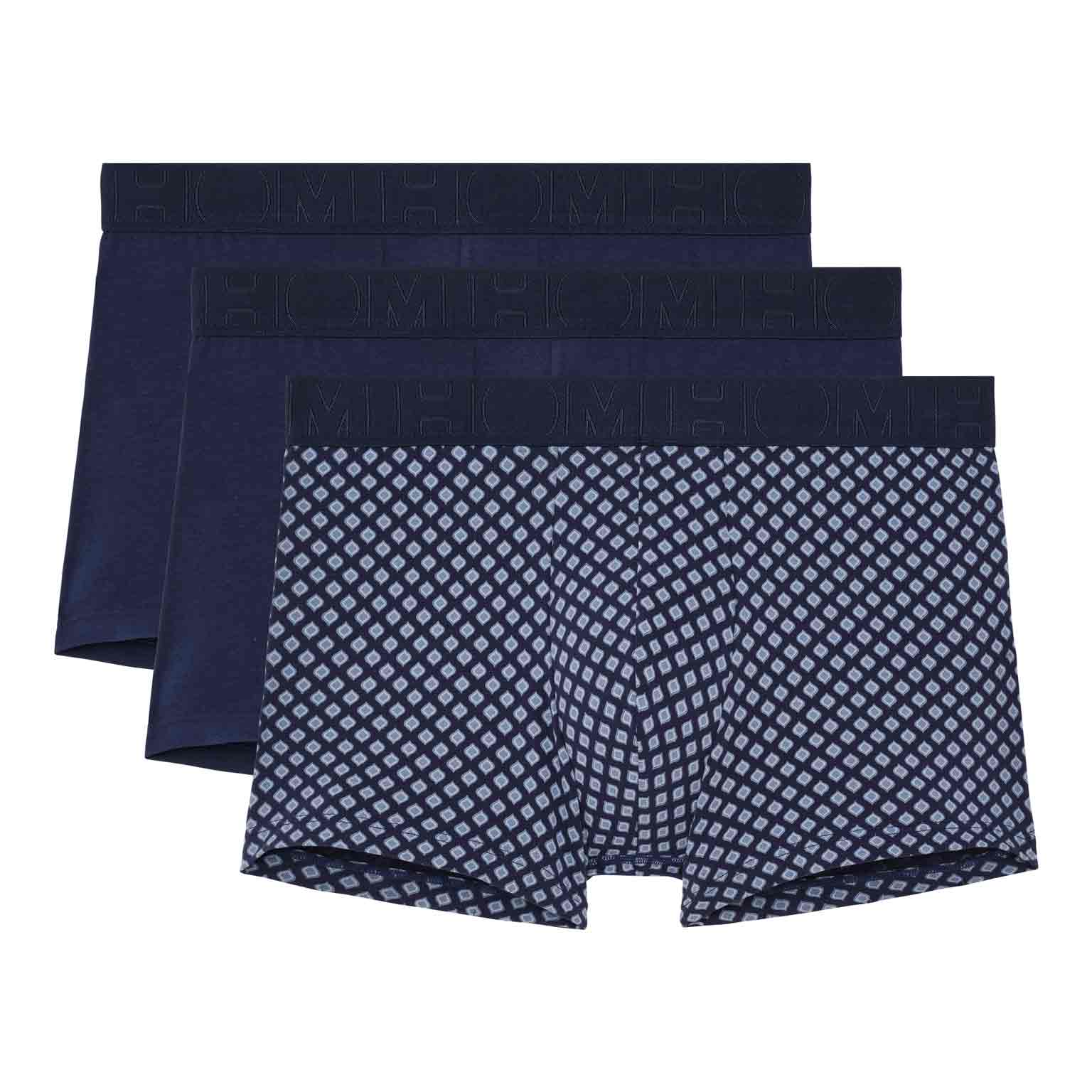Sættet indeholder to ensfarvede navy boksers og én med et stilfuldt mikroprint i slipsdesign. Den klassiske elastiske linning er diskret prydet med HOM-logo hele vejen rundt. Ideel til dig, der ønsker komfort med et strejf af variation.