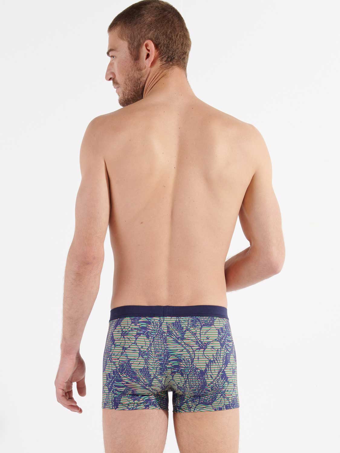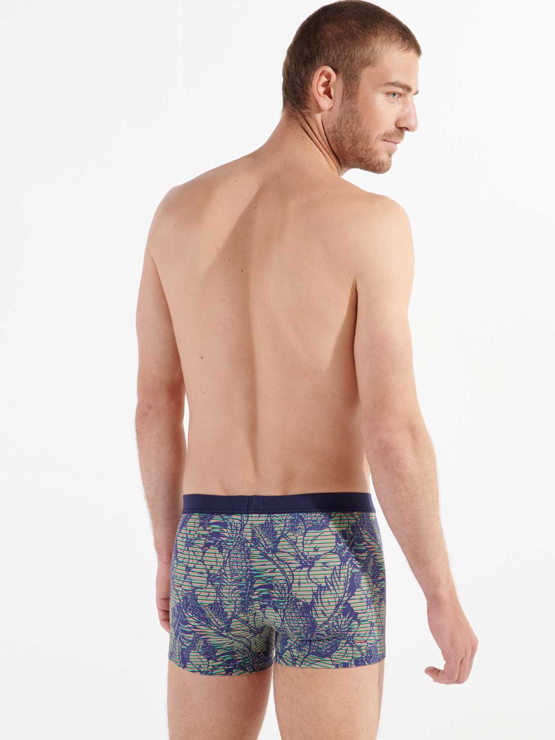 Der Callum - Comfort Boxer Briefs ist aus hochwertigem Baumwoll-Modal gefertigt, das äußerst bequem ist und sich weich anfühlt. Dieser Boxerslip für Männer hat einen schönen Blumendruck auf einem gestreiften Hintergrund in verschiedenen Farben. Der Callum verfügt über einen Komfortbund, bei dem der Stoff über das elastische Band gestülpt ist und so für zusätzlichen Komfort sorgt. Ein kleines HOM-Etikett befindet sich auf der linken Seite des Komfortbundes.