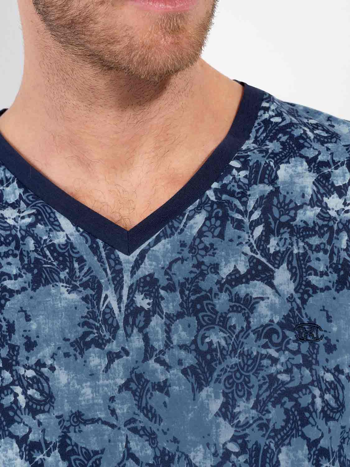 - Aquarellartiger Blumenprint in Jeansblau auf dunkelblauem Hintergrund